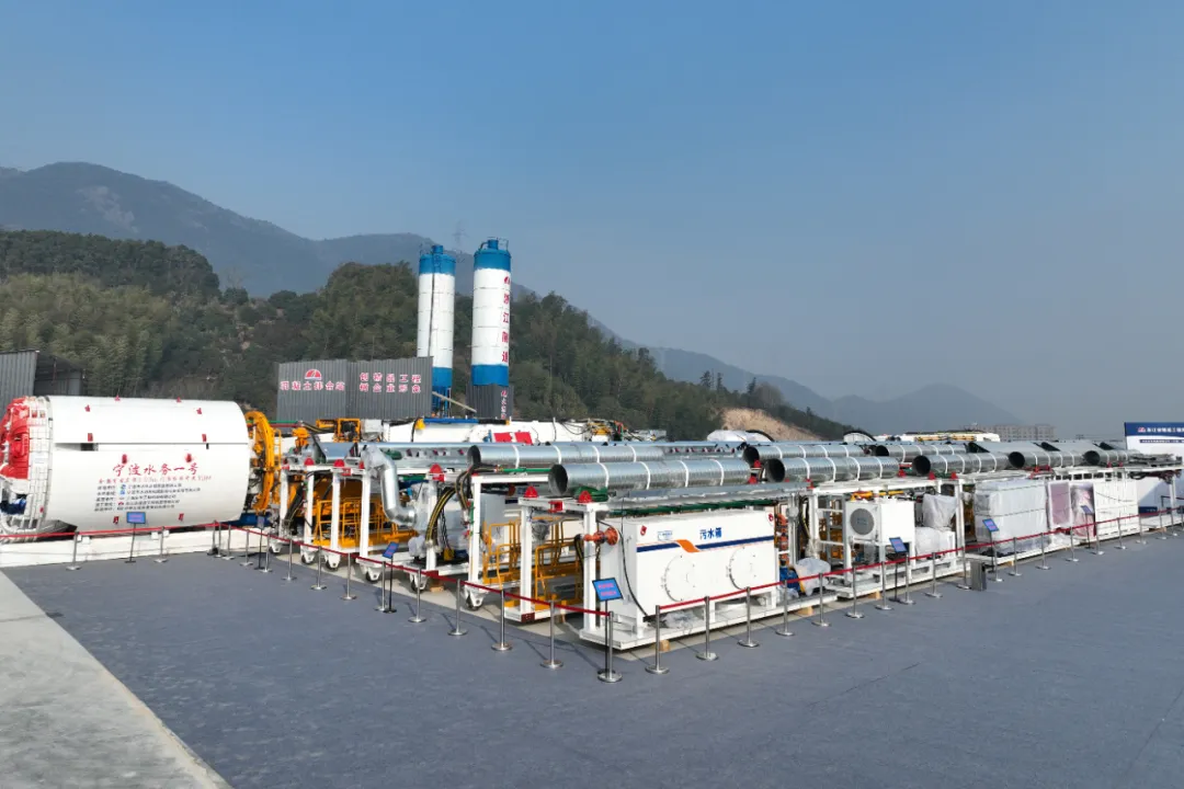 作為省、市重點(diǎn)工程建設(shè)項(xiàng)目,寧波市水庫群東西線聯(lián)通工程位于寧波市奉化區(qū)南部山區(qū),工程設(shè)計(jì)輸水規(guī)模為40萬m³/d。建設(shè)內(nèi)容包括一條干線、兩條支線,以及沿線調(diào)節(jié)站及各類閥井,全線總長約40.54km。6#隧洞作為本工程重要節(jié)點(diǎn)性分部工程,全長約12.28km,采用鉆爆法+TBM(全斷面硬巖掘進(jìn)機(jī))進(jìn)行隧洞開挖。值得一提的是,本次所采用的敞開式TBM設(shè)備“寧波水務(wù)一號”,其開挖直徑4.03米,整機(jī)長度約225米,掘進(jìn)長度10.87km,為寧波水利行業(yè)首次應(yīng)用。