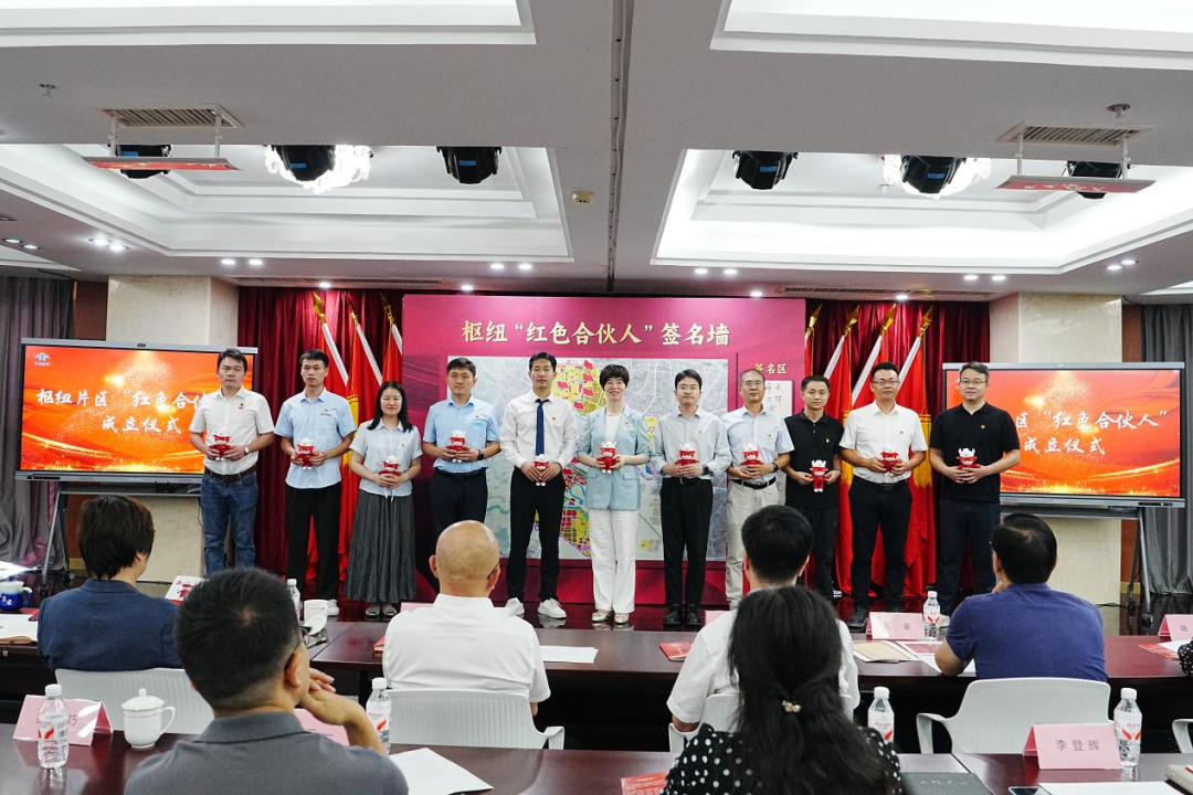 本次活動(dòng)意義非凡,現(xiàn)場正式發(fā)布了“知行樞紐”黨建品牌,并由樞紐公司和各參建單位攜手成立了“紅色合伙人”黨建聯(lián)盟。在備受矚目的“紅色合伙人”黨建聯(lián)盟成立儀式上,我院黨總支書記、副院長王洪霞與其他參建單位代表一同登臺(tái),在象征責(zé)任與協(xié)作的“寧波樞紐共建墻”上鄭重簽名,并將代表承諾的紅色旗幟堅(jiān)定地插在共建版圖上。這標(biāo)志著寧波市水利院正式成為寧波樞紐建設(shè)“紅色合伙人”大家庭的一員,共同致力于以高質(zhì)量黨建引領(lǐng)精品工程建設(shè)。