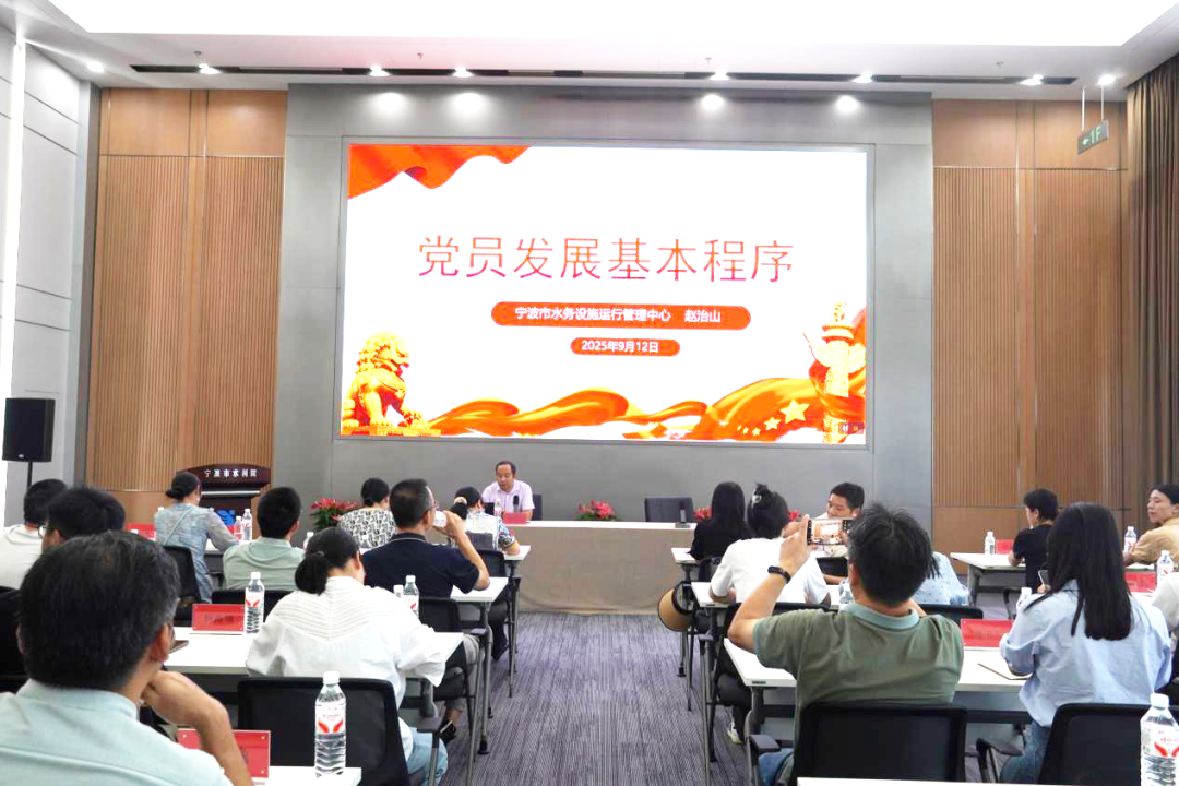 2025年9月12日上午,中共寧波市水利局直屬機(jī)關(guān)委員會在我院一樓報(bào)告廳成功舉辦黨務(wù)干部培訓(xùn)。本次培訓(xùn)以“銘記抗戰(zhàn)歷史 傳承紅色基因 賦能水利發(fā)展”為主題,旨在進(jìn)一步提升全局系統(tǒng)黨務(wù)干部的政治素養(yǎng)和業(yè)務(wù)能力,夯實(shí)基層黨組織建設(shè)基礎(chǔ)。寧波市水利局系統(tǒng)各基層黨組織組織委員近三十人參加了培訓(xùn),我院相關(guān)黨務(wù)干部一同參與。