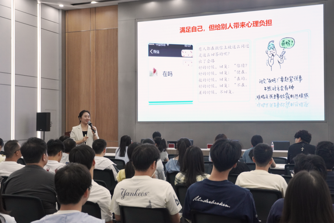 陳瑛老師的講座圍繞自我激勵、協(xié)同溝通、對外溝通、對上溝通四大維度展開。首先,陳瑛老師分別以工作場景和生活場景中的溝通對話與大家進行互動,帶領大家對“高情商”進行思考與剖析,由此展開當天的主題。隨后,結(jié)合豐富的實戰(zhàn)案例與互動環(huán)節(jié),陳瑛老師層層遞進,深入淺出地講解了如何在日常工作中實現(xiàn)高效溝通,激發(fā)自我驅(qū)動力,提升團隊協(xié)同效能。在長達2.5小時的課程中,陳瑛老師還結(jié)合商務禮儀的要點,根據(jù)不同場景對溝通實操進行了解析。并強調(diào),良好的溝通不僅是技巧,更是一種心態(tài)與習慣的培養(yǎng),也是實現(xiàn)個人與團隊實現(xiàn)共同成長的重要途徑。