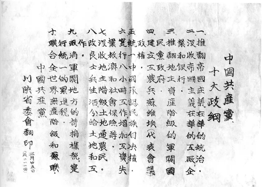 六大通過(guò)的政治決議案提出了中國(guó)革命的十大政綱