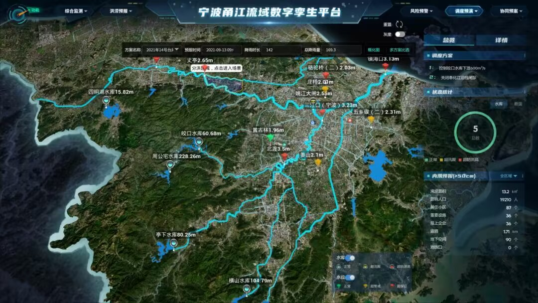 目前,基于寧波甬江流域數(shù)字孿生平臺打造的防洪應(yīng)用已完成“綜合監(jiān)測、洪澇預(yù)報、風(fēng)險預(yù)警、仿真預(yù)演、協(xié)同預(yù)案”5大功能板塊的開發(fā)和“三江堤防、沿海海塘、重點水庫、重要設(shè)施內(nèi)澇”4個“四預(yù)”場景的應(yīng)用。