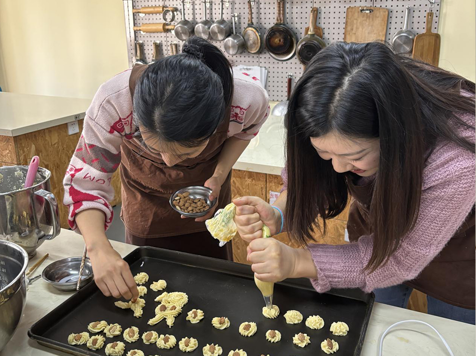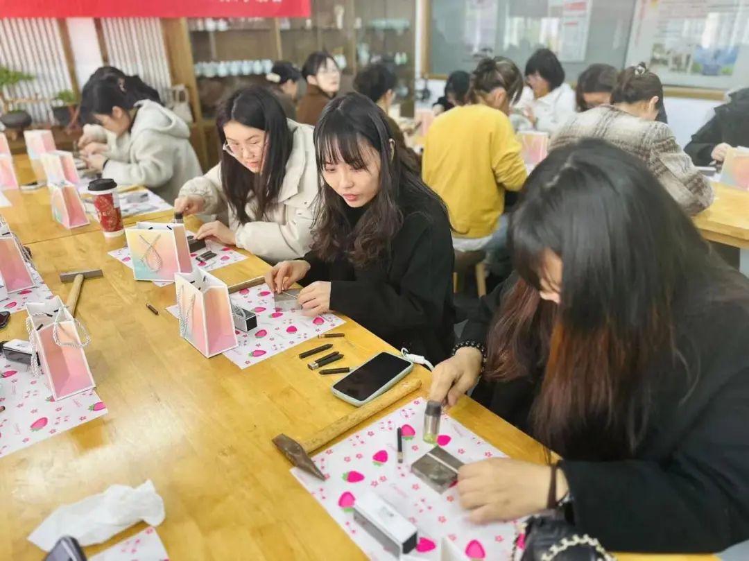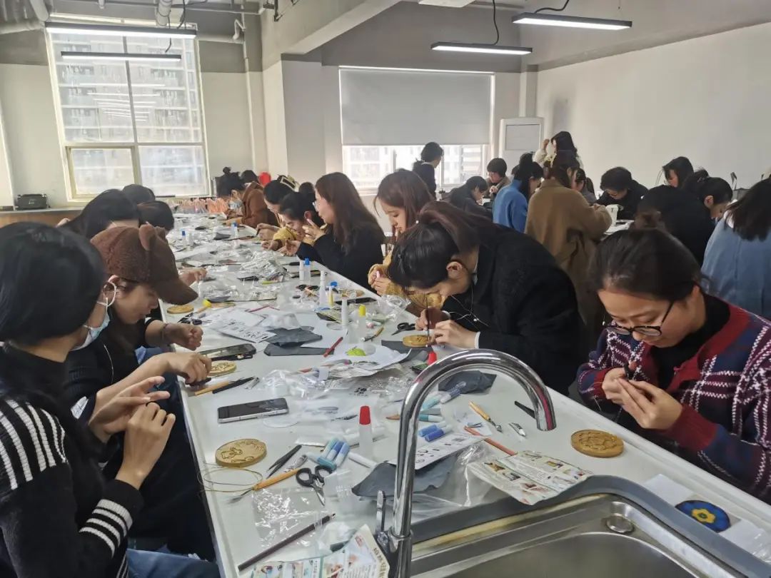 活動當(dāng)天,女職工們按時到達(dá)活動教室,發(fā)揮巧思,施展妙手,或是“掐絲、剪絲、上砂、上膠”,或是“測量、造型、印刻、拋光”,或是“和面、打發(fā)、烘烤、裝點(diǎn)”,解鎖了一系列全新的體驗(yàn),收獲了節(jié)日的快樂和美好。