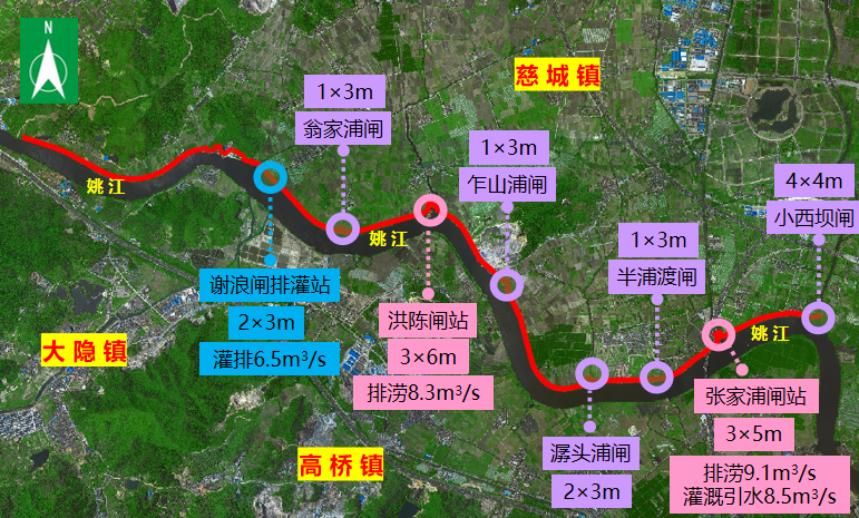 江北區(qū)姚江干流堤防維修加固工程(慈城段)位于寧波市江北區(qū)慈城鎮(zhèn),主要內(nèi)容為:整治堤防長度10.25km,新建閘站2座、水閘5座,維修加固排灌站1座。本工程在滿足防洪排澇的前提下,綜合考慮水利設施的造型美觀及河濱的綠化、休閑等,滿足人們親水及游樂的需求。