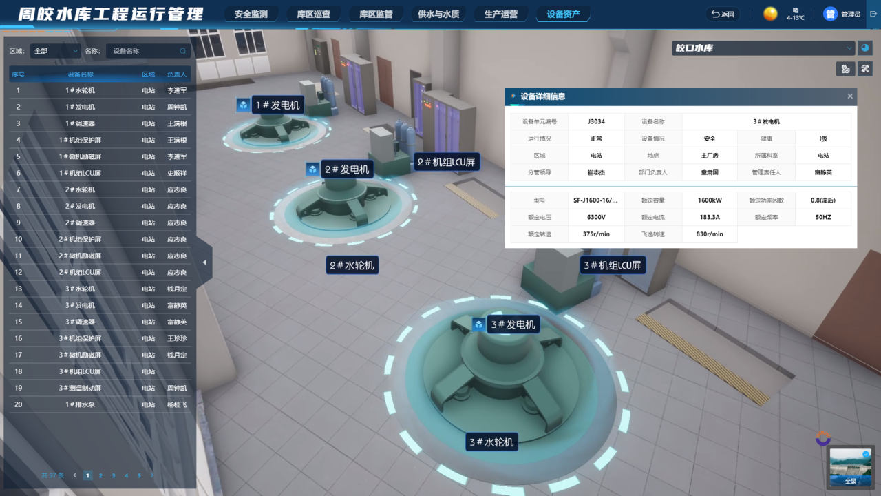 周公宅水庫運行管理矩陣平臺“四管”工作頁面