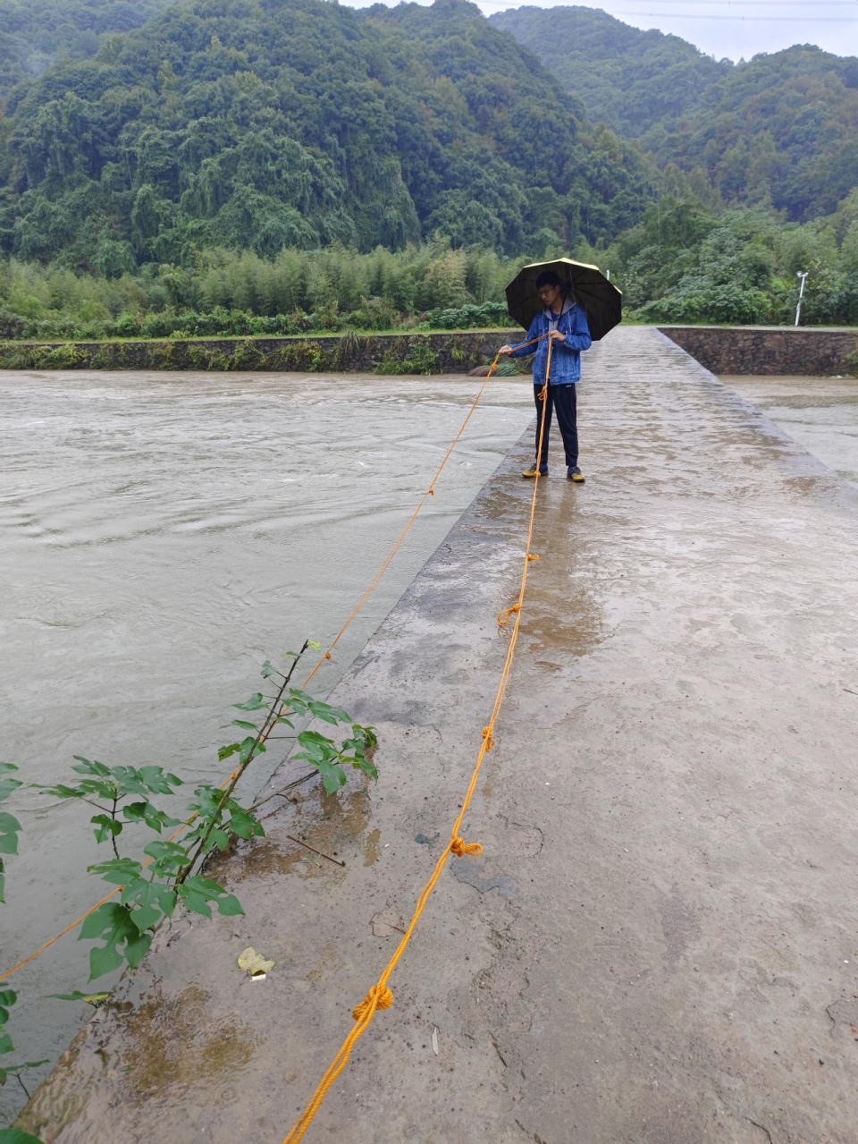 在鐘家潭進行水文勘察與測流率定工作